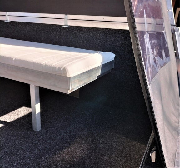 In the folded cabin there is enough space for all your equipment. Because it can be closed with a lock, you can leave your belongings behind in the boat more easily and safely.